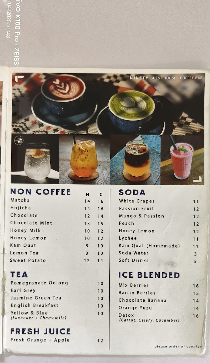 While the space is cozy with vintage charm and ambient music, some patrons noted inconsistencies in their offerings, like the Dirty coffee. However, the majority celebrate the friendly service and overall quality. Whether you're stopping by for a quick pick-me-up or a leisurely afternoon, Ninety Guest House & Coffee Bar promises a memorable experience worth revisiting.